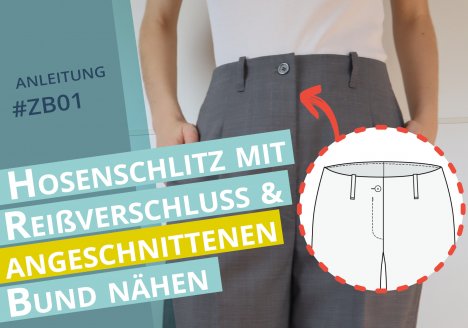 Angeschnittenen Bund und Schlitz mit Reißverschluss bei klassischer Hose nähen #ZB01