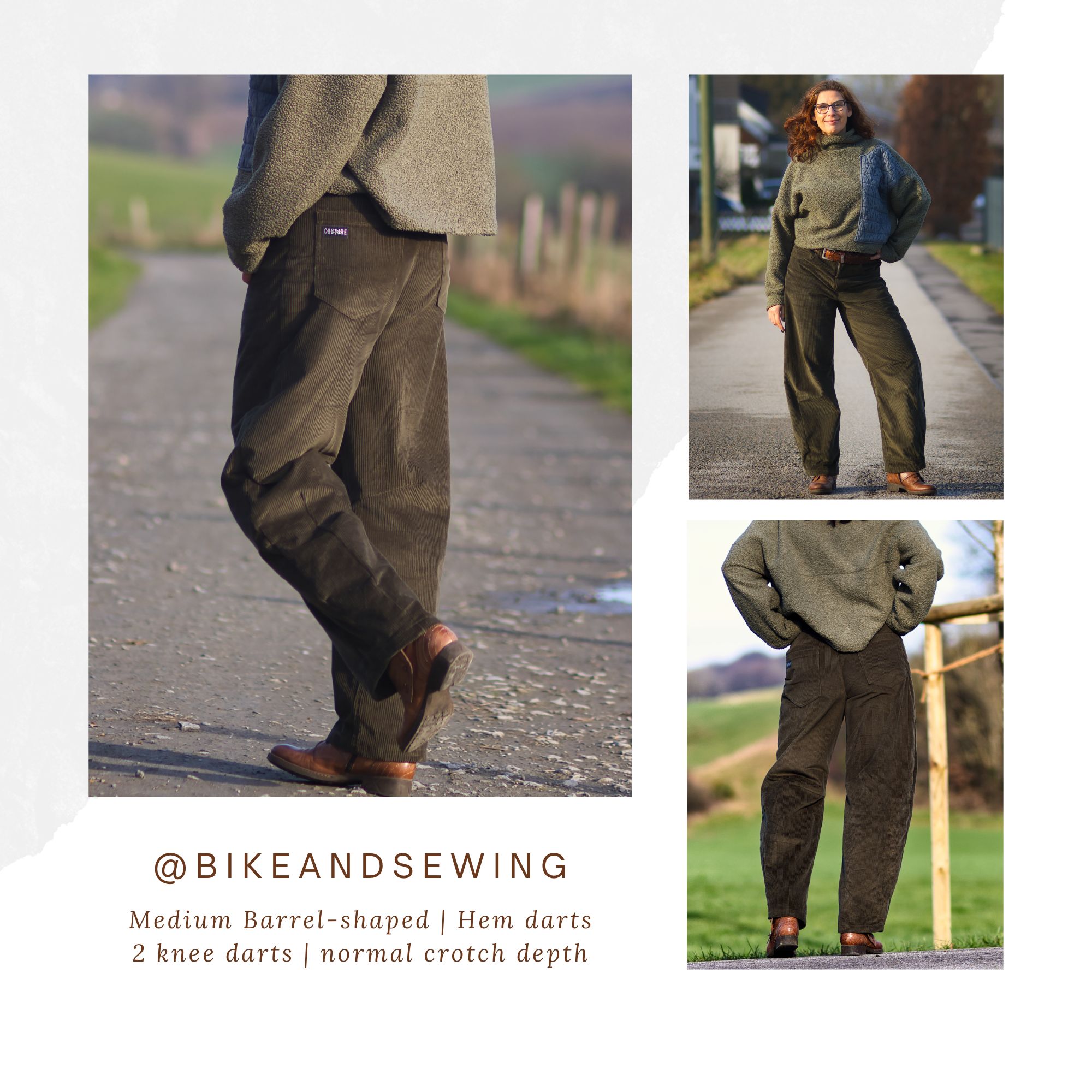 Do you like barrel leg jeans? Here you have the opportunity to design your own individual pattern according to your measurements and ideas. You can choose between different fits, pocket variations, waist heights, lengths, etc. Barrel leg jeans get their name from their shape – and even if it doesn’t sound particularly charming, it describes the outer silhouette of the jeans very well.