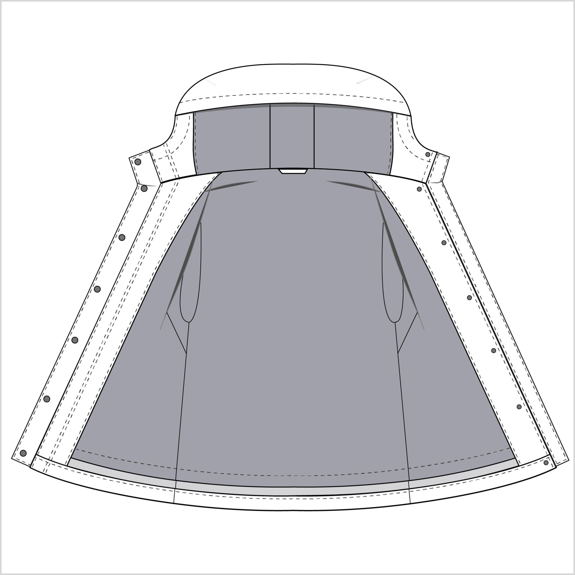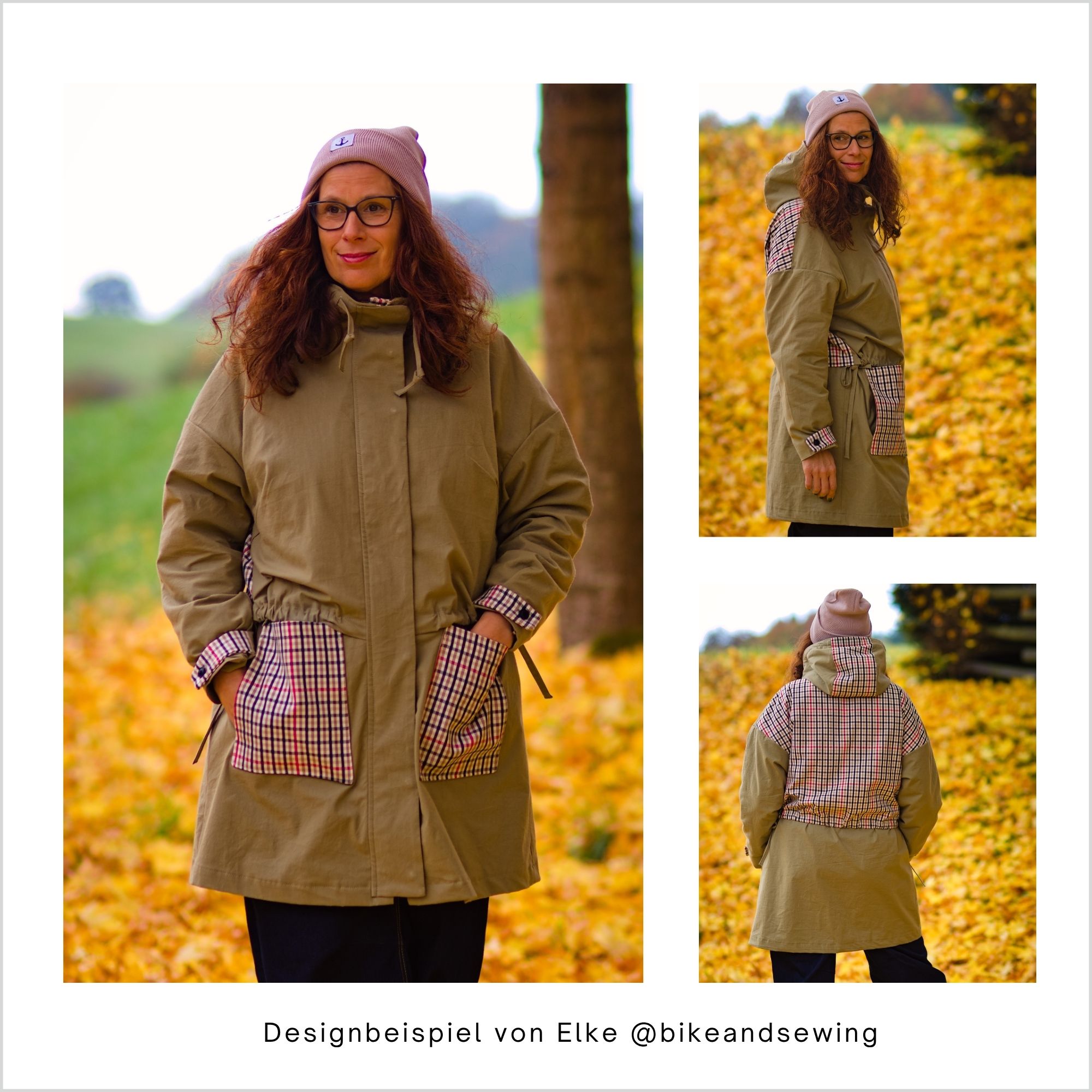 Der Parka mit Kapuze ist für leichte bis mittelschwere Stoffe konzipiert, z. B. dünner Softshell, Denim, Twill, Gabardine, Oilskin, …